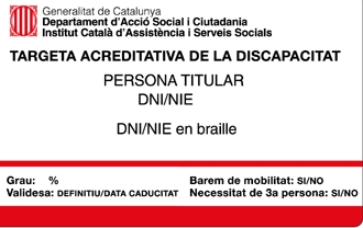 La Targeta acreditativa permet a les persones amb discapacitat legalment reconegudes acreditar de forma àgil i pràctica el seu grau de discapacitat. Tenen dret a portar-la aquelles persones amb residència habitual a Catalunya i amb un grau de discapacitat igual o superior al 33% provisional o definitiu.